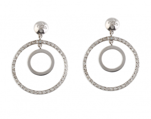 Con aro liso colgante en su interior. En oro blanco de 18K. Peso total aprox btes:0,60 ct. Longitud: 3,7 cm.