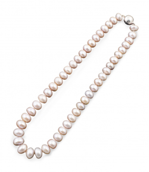 140. Collar de perlas rosadas de agua dulce en degradé con cierre de imán en plata.