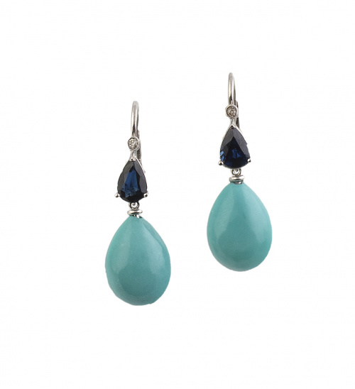 178. Pendientes largos con perillas de zafiro entre brillante y gotas de turquesa colgantes