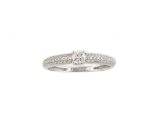 224. Sortija media alianza con brillante central de 0,15 ct y pavé de brillantes en los brazos de la montura