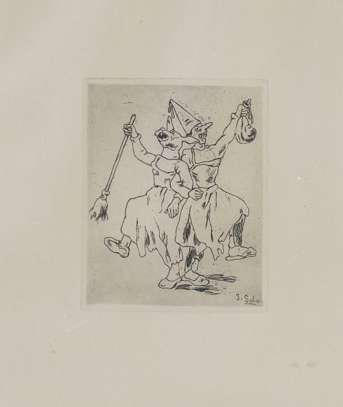 249. JOSÉ GUTIÉRREZ SOLANA (Madrid, 1886 - 1945)Máscaras bailando cogidas del brazo.