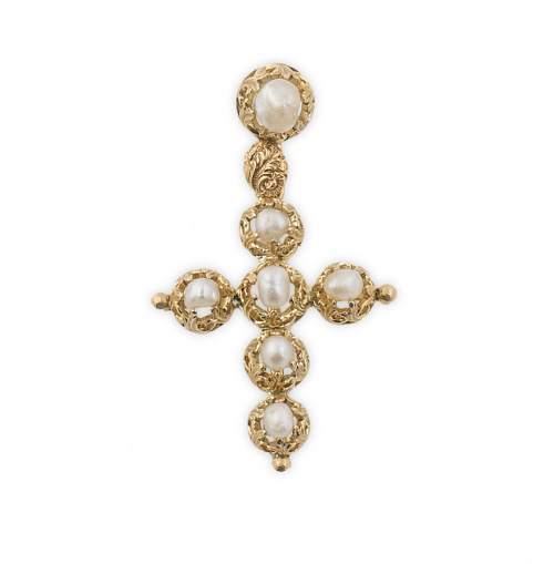 Cruz colgante de pp. S.XX con perlas de aljófar en montura labrada y calada