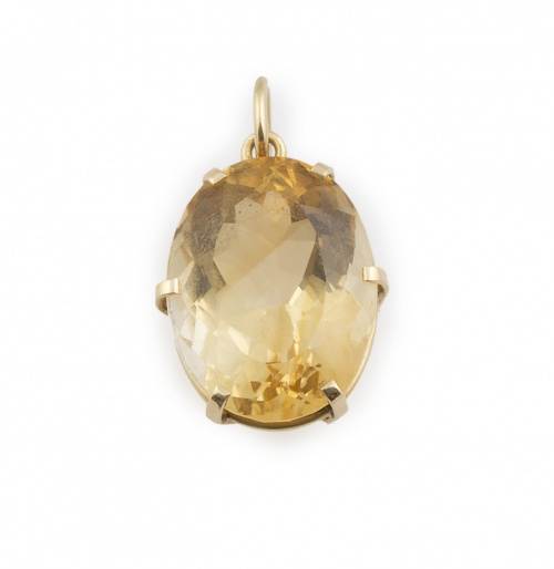 44. Colgante con cuarzo citrino de talla oval en montura de oro amarillo de 18K