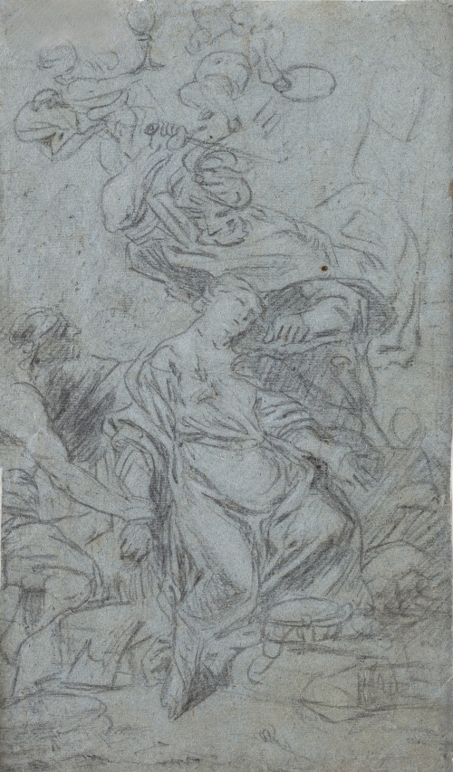 Lápiz sobre papel azulado. 31,6 x 18,8 cm.