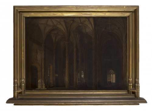 Óleo sobre lienzo. 71 x 98 cm. Con marco arquitectónico en madera tallada y dorada. Discípulo de Federico de Madrazo, y especializado en paisajes urbanos y vistas arquitectónicas, fue premiado en distintas Nacionales de Bellas Artes: mención honorífica en 1856, tercera medalla en 1858 y primera en 1860 y 1862. En la Exposición Universal de París de 1867 obtuvo tercera medalla, y en las de Viena (1873), Filadelfia (1876) y Múnich (1876) el máximo galardón. Respecto a la obra de su mano que ofrecemos, el Museo del Prado guarda una versión en mayor tamaño (144 x 198 cm.), expuesta en la Exposición Nacional de 1866 y “adquirida el 3 de mayo de 1867 en la cantidad de 1,000 escudos”; tras su compra, “su autor fue propuesto para la encomienda ordinaria de Carlos 3º”.