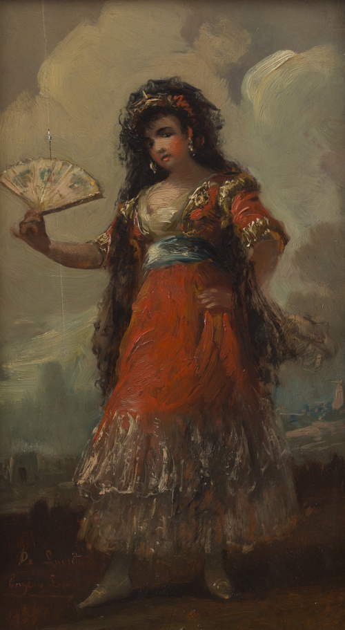 EUGENIO LUCAS VILLAAMIL (Madrid, 1858-1919)Maja con abanico