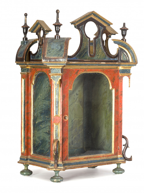 Hornacina arquitectónica Felipe V de madera lacada y dorada.Trabajo castellano, posiblemente burgalés, primera mitad del S. XVIII .