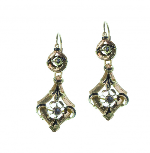 Home / Subasta 19 y 20 de junio de 2019 / Pendientes largos victorianos S. XIX con rombo grande colga