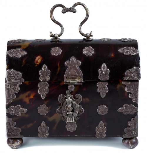 483. Cofre de carey y plata aplicada, con tapa curva.Trabajo mejicano, S. XIX .