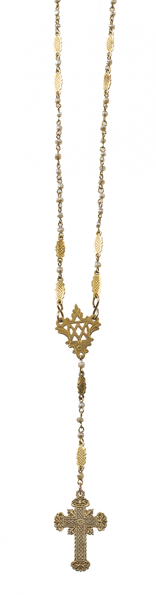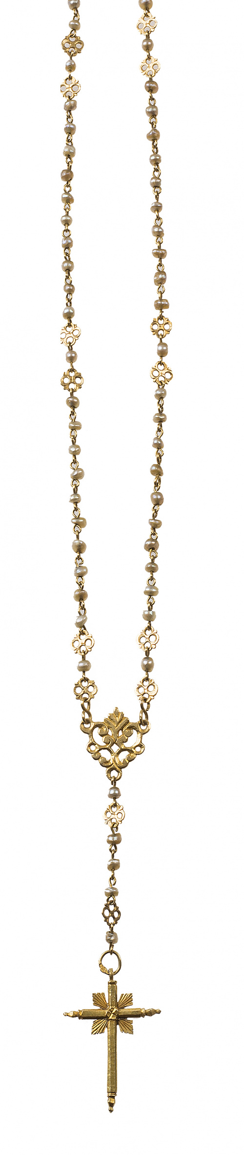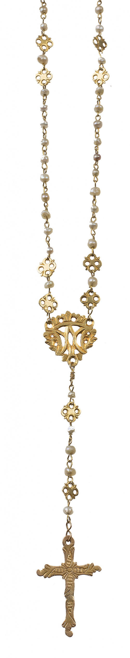 1. Conjunto de tres delicados rosarios S. XIX con perlas de aljófar