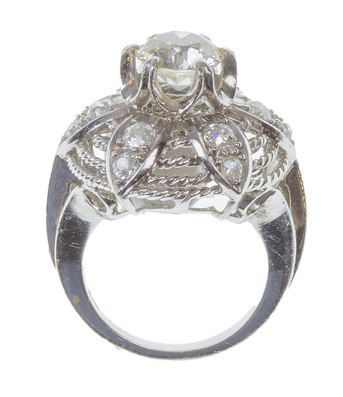 199. Sortija flor bombée años 50, con brillante central de 1,70 ct aprox