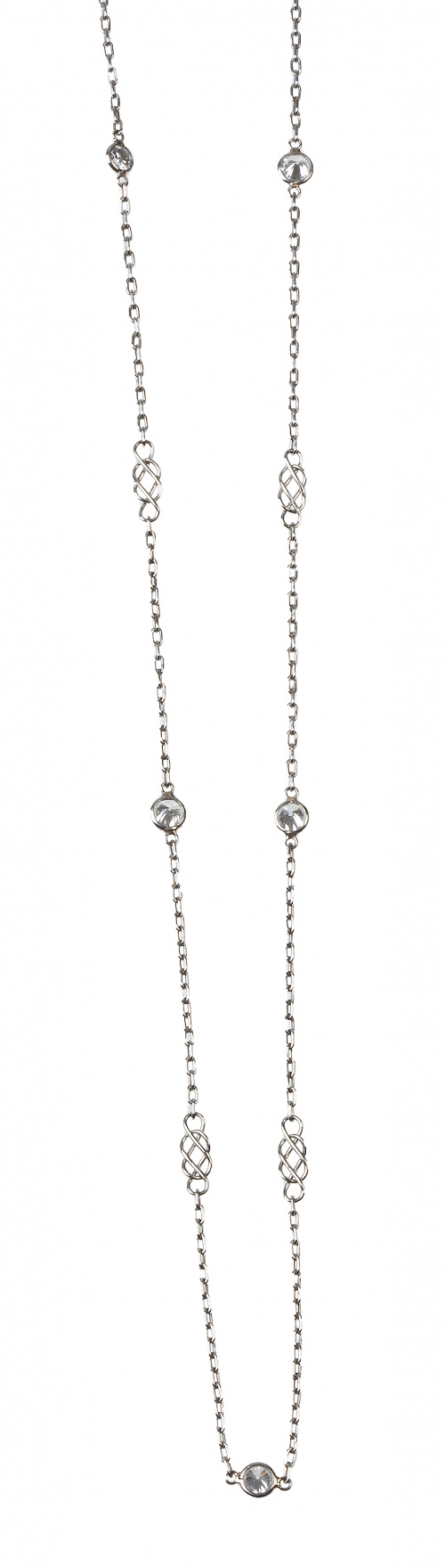 580. Cadena de platino con cinco chatones de brillantes combinados con eslabones de ochos