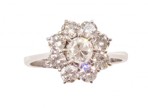 593. Sortija rosetón de brillantes en forma de flor, con brillante central de 0,48 ct