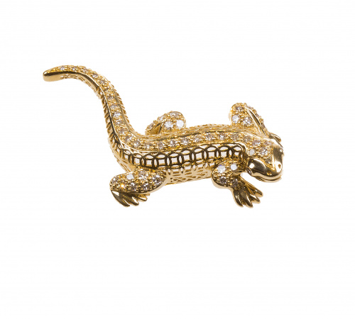 Broche salamandra de brillantes en oro amarillo de 18K
