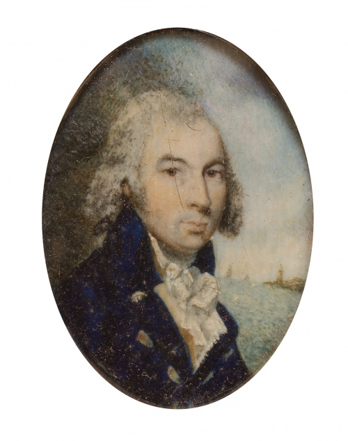 ESCUELA INGLESA, SIGLO XVIIIRetrato de caballero con vista de puerto.