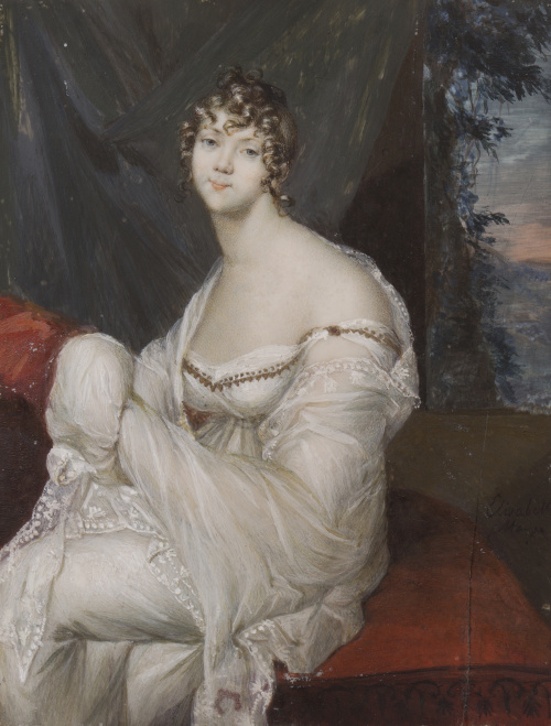Miniatura sobre marfil. 13 x 10,5 cm. Firmada: “Elisabeth M.....” (ilegible).
