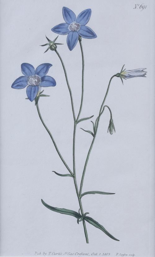 849.1. WILLIAM CURTIS (1746 - 1799)Flores: “Iris Pallida”, “Babiana Tubiflora”, “Campunula Gracilis”, “Orobus Varius”.