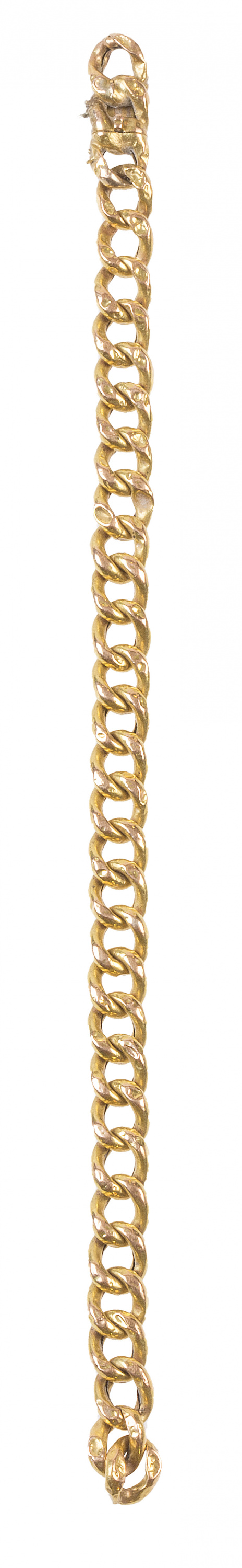 135. Lote formado por medalla lisa y pulsera de eslabón barbado en oro amarillo de 18K