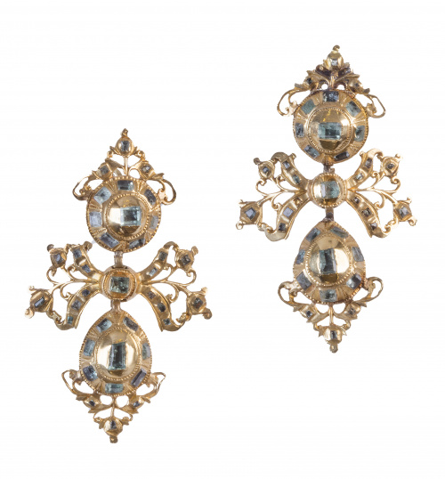 Home / Subasta 3 y 4 de diciembre de 2019 / Pendientes largos populares S. XVIII-XIX de esmeraldas con