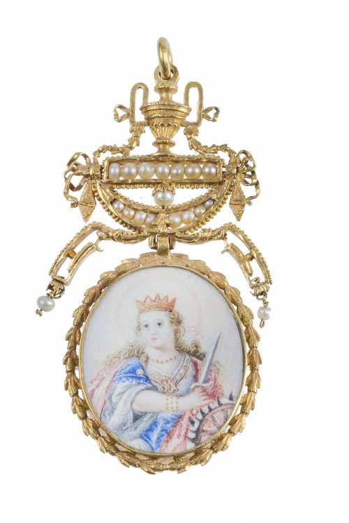 Home / Subasta 3 y 4 de diciembre de 2019 / Colgante Imperio pp. S. XIX con miniaturas de Santa Catalin