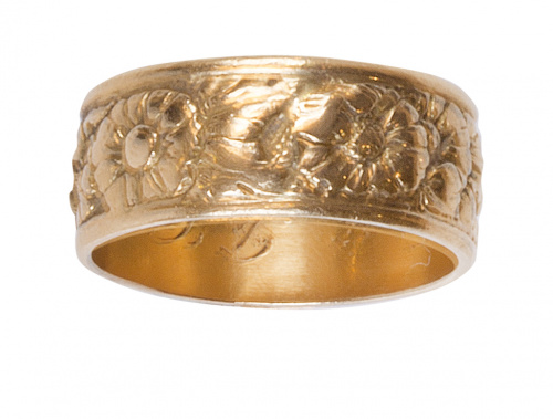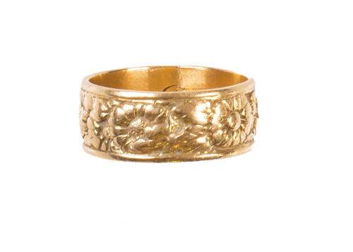 48. Sortija ancha de pp. S. XX con decoración de flores y hojas en relieve