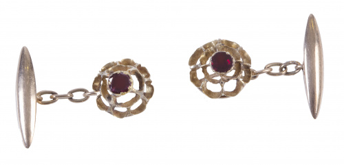Gemelos circulares de pp. S. XX en forma de flor calada con granate central