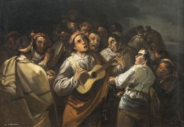 La obra que presentamos pintada hacia 1625 se puede comparar desde el punto de vista compositivo con un óleo sobre cobre de Baltasar Echave Ibía conservado en la Basílica de Guadalupe coincidente en tamaño, y cuya composición probablemente está tomada de un grabado flamenco.