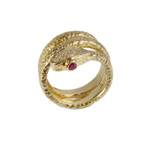 Sortija en forma de serpiente con cabeza de brillantes y ojos de rubí