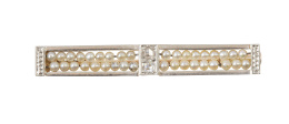 Broche isabelino con flores y hojas con decoración grabada y aplicaciones de perlas