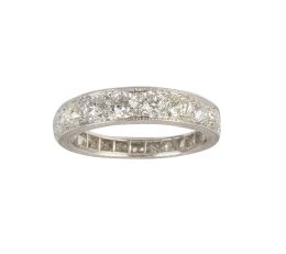 3. Sortija lanzadera de pp. S. XX en forma de guante cuajada de diamantes con anillo y remate de puño de rubíes