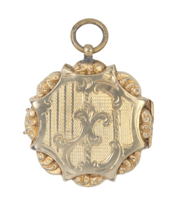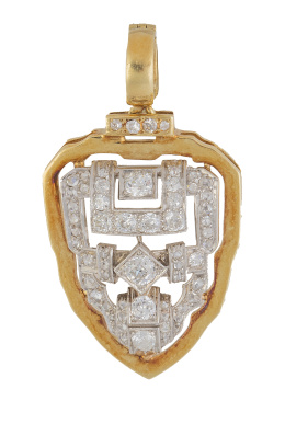 36. Colgante guardapelo oval de pp. S. XX con tres brillantes en el frente y decoración de filigrana
