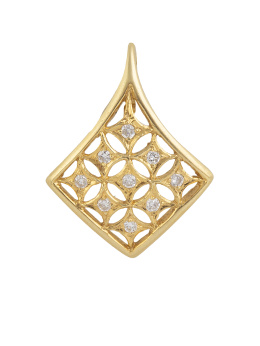 Colgante guardapelo oval de pp. S. XX con tres brillantes en el frente y decoración de filigrana