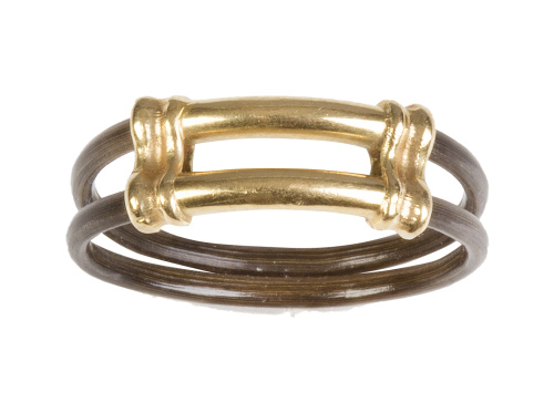 114. Sortija con doble hilo de pelo de elefante con frente en oro amarillo de 18K
