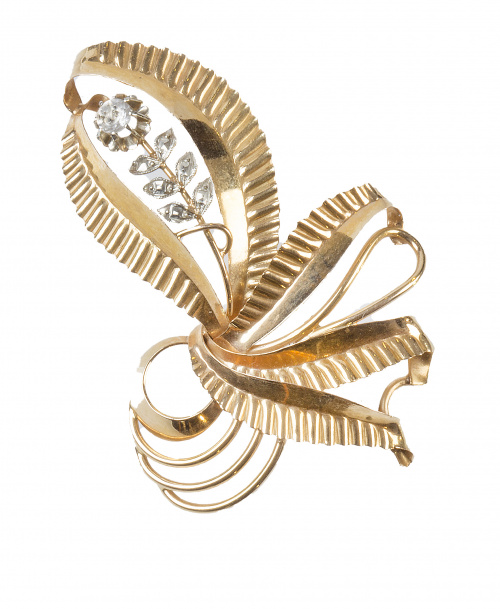 119. Broche portugués S. XIX con diseño de ramo de flores adornado con símil diamantes