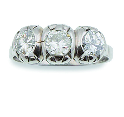 224. Sortija tresillo de pp. S. XX con tres brillantes que suman 1,50 ct