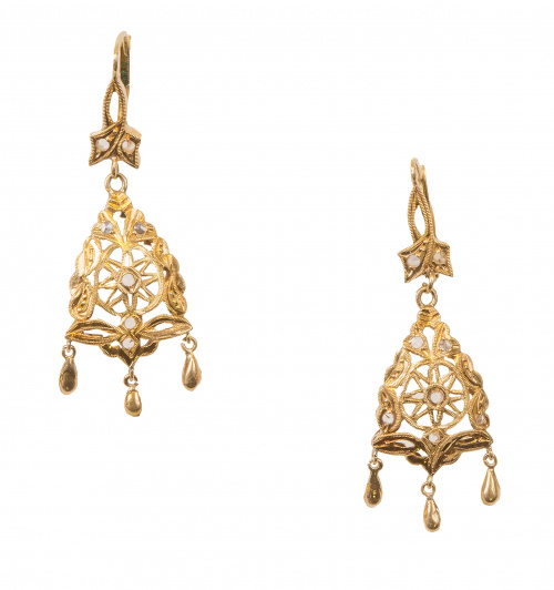 Home / SUBASTA DE JULIO / Pendientes largos populares con triángulo calado y con zafi