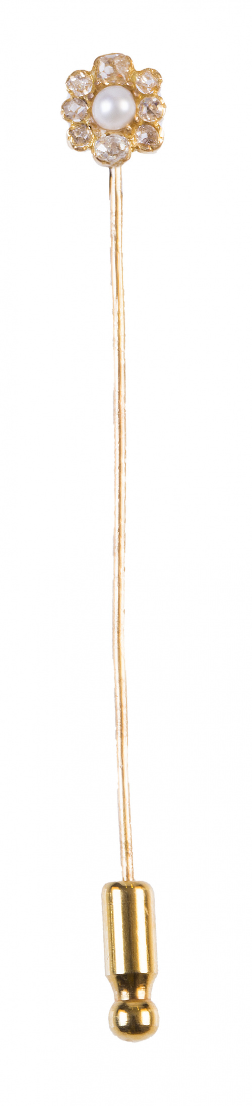 26. Alfiler de corbata años 30 en forma de flor con perla central y brillantitos en pétalos