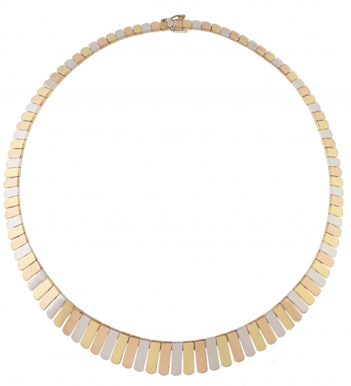 266. Gargantilla articulada vintage años 60 con plaquitas en metal dorado tricolor