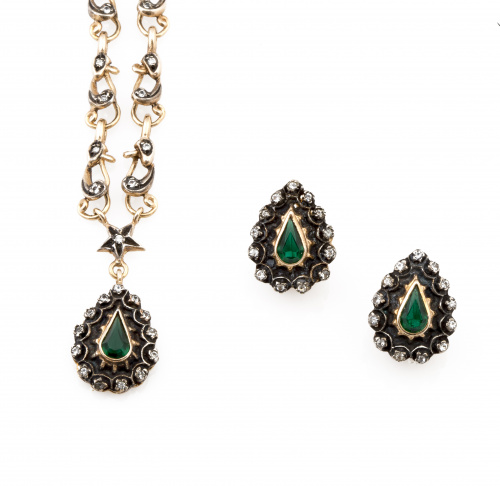 270. Conjunto de collar y pendientes de bisuteria vintage con estilo isabelino