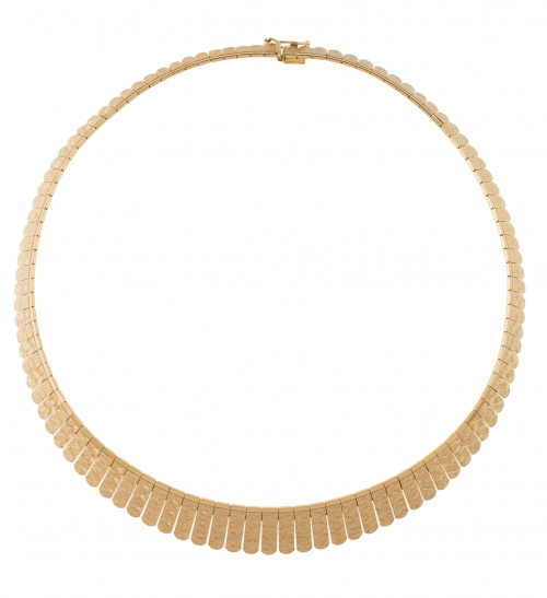 Gargantilla articulada vintage años 60 con plaquitas en metal grabado dorado mate
