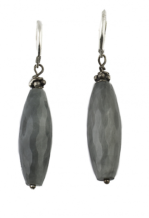 Conjunto de collar con piedras ovales alternos con lágrimas y pendientes en ágata grisácea en plata