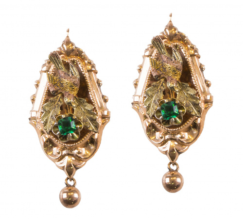 Home / SUBASTA DE JULIO / Conjunto de broche y pendientes en oro labrado con pajarito