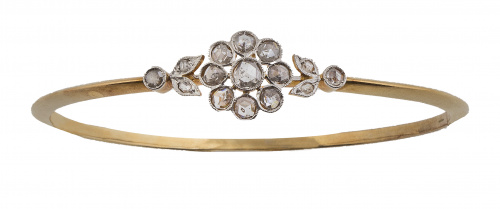 Brazalete de pp. S. XX con rosetón central de diamantes flanqueado por hojitas y chatón de diamantes