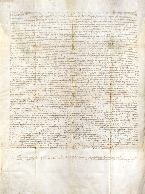 Manuscrito de “Guillermo Raymundo de Monteolivo” relacionado con el “Bisbat de Gerona” y el “Bisbat de Aragon”. Firmado en el año 1400..
