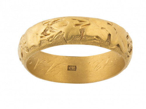 Sortija alianza Art-Nouveau con trabajo grabado de flores en relieve