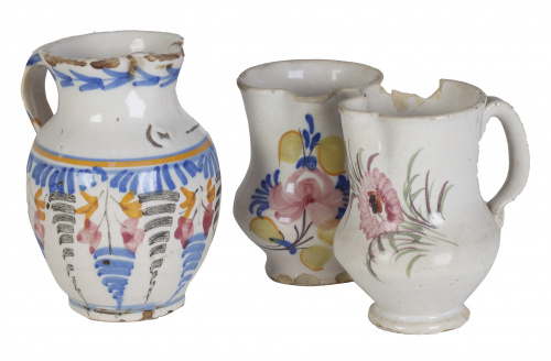 Tres jarros de cerámica; dos de cerámica levantina y uno de cerámica de Talavera, S. XIX