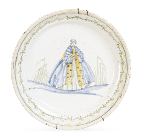 Home / SUBASTA DE JULIO / Plato en cerámica esmaltada con una dama pintada.Francia,