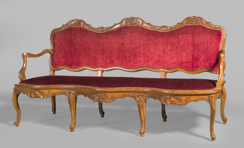 Home / SUBASTA DE JULIO / Canapé de madera de nogal de estilo Luis XV, con tapicería