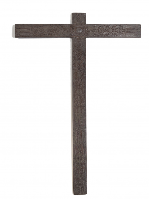 Home / SUBASTA DE JULIO / Cruz conventual en madera de roble con decoración de tarace