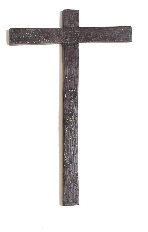 Home / SUBASTA DE JULIO / Cruz de madera con incrustaciones, metálicas.Trabajo caste